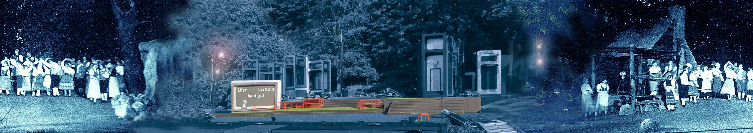 Bildmontage: Abbildung 1950er Jahre aus dem Stadtarchiv Eutin, Bühnenfoto 2024 „Der Freischütz“: Hans-Peter Förster