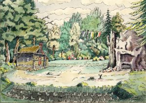 1952: „Die Parkkulissen am See waren für eine Landschaftsbühne wie geschaffen … Scheinwerfer sind rings in den Kronen versteckt, und dem Boden angepasst ist das Orchester in einer Versenkung untergebracht.“